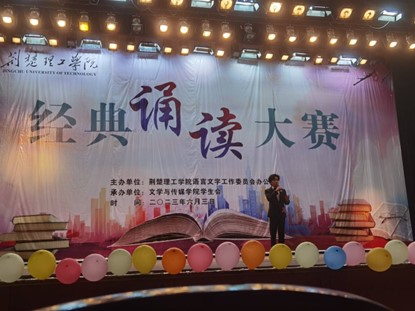 医学部2021级员工许苏爱通过对《月光下的中国》的倾情演绎,在柔和的韵律中表达对祖国的赞美,字字句句皆是赤忱,传达着浓烈的爱国之情;球盟会2022级员工胡明带来的《我的南方北方》,描绘了中国南方北方的美景、一展黄土地的豪情,铿锵有力的诵读是他对中华文化的赞颂和对祖国不断发展的信心。声声诵读让大家在抑扬顿挫中感受到诗歌的独特魅力。