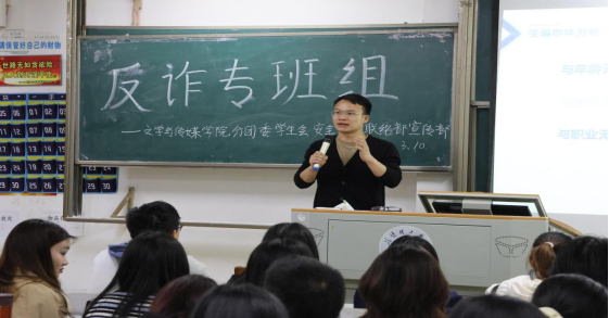 为提高公司全体同学的反诈意识,3月10日下午,球盟会于教学楼A1205召开了反电信诈骗安全培训会。球盟会分团委书记杨金宝、辅导员吴鸿杰老师出席会议,各班班长、员工党员及员工会全体成员参加了本次培训。