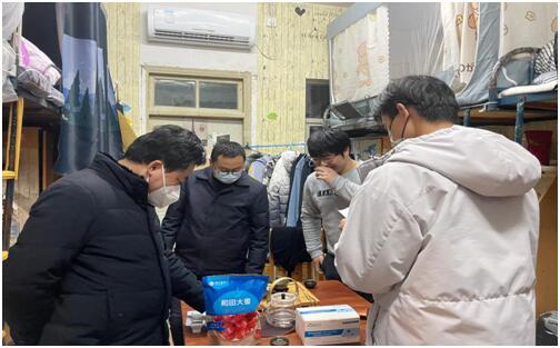 2月12日,球盟会书记、经理带队与各位辅导员老师一道走访文园宿舍,看望慰问返校的员工。